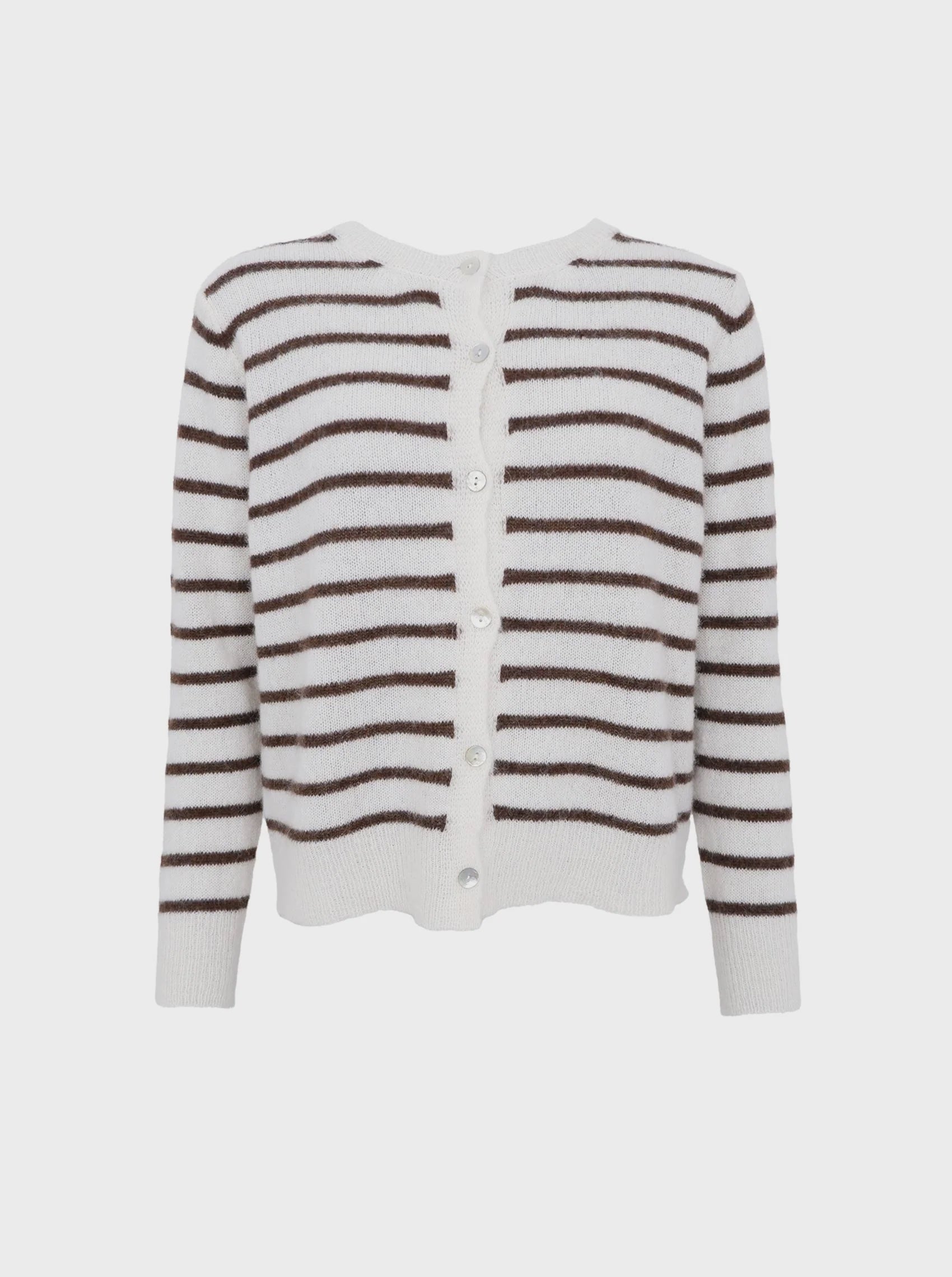 Black Colour Dell Striped Knit Cardigan - Off White