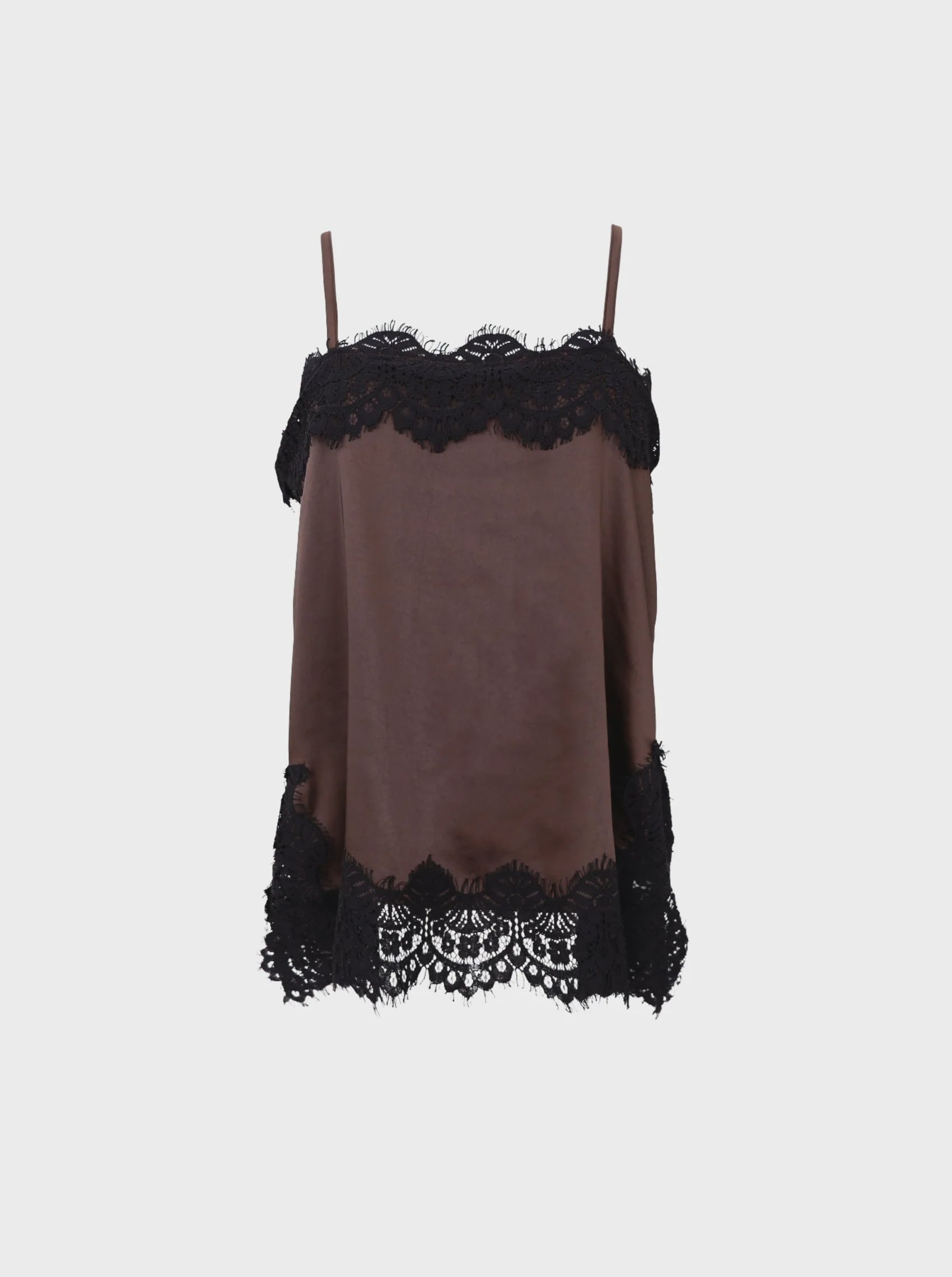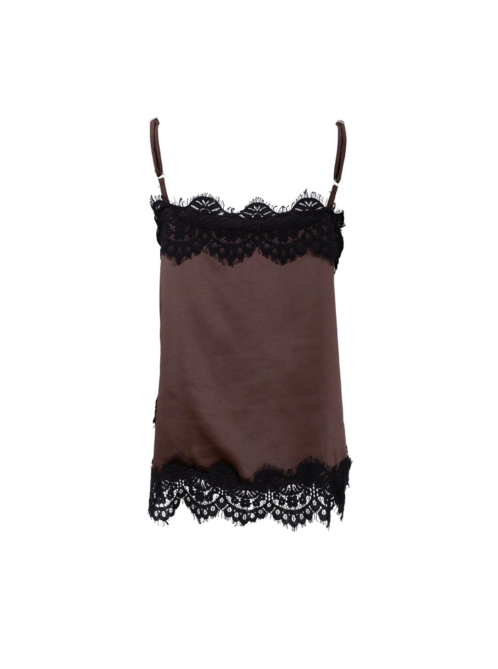 Black Colour Evie Lace Strap Top - Coffee