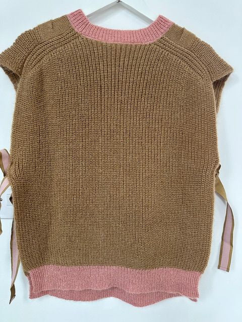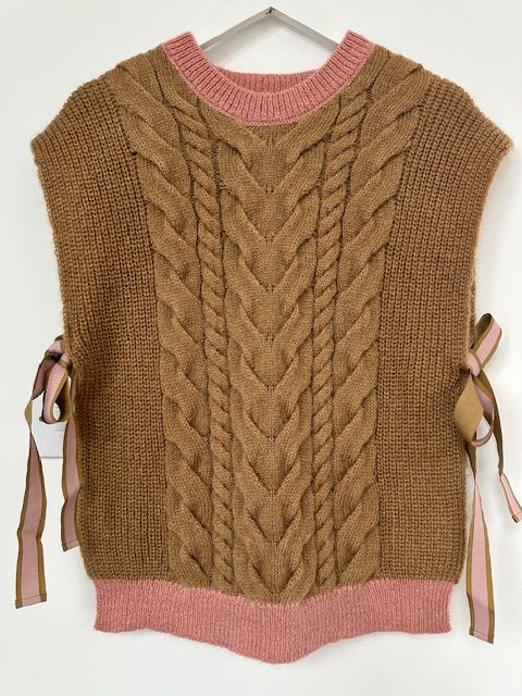 Malej Knitted Ties Vest - Camel / Pink