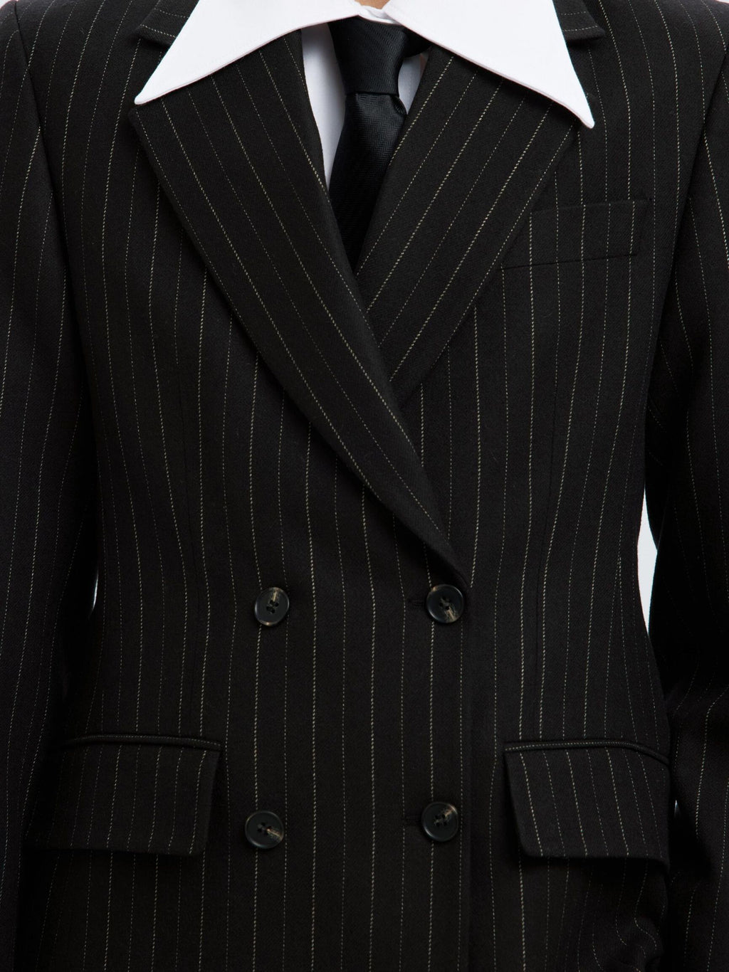 Selected Femme Malia Manteco Blazer - Black Pinstripe
