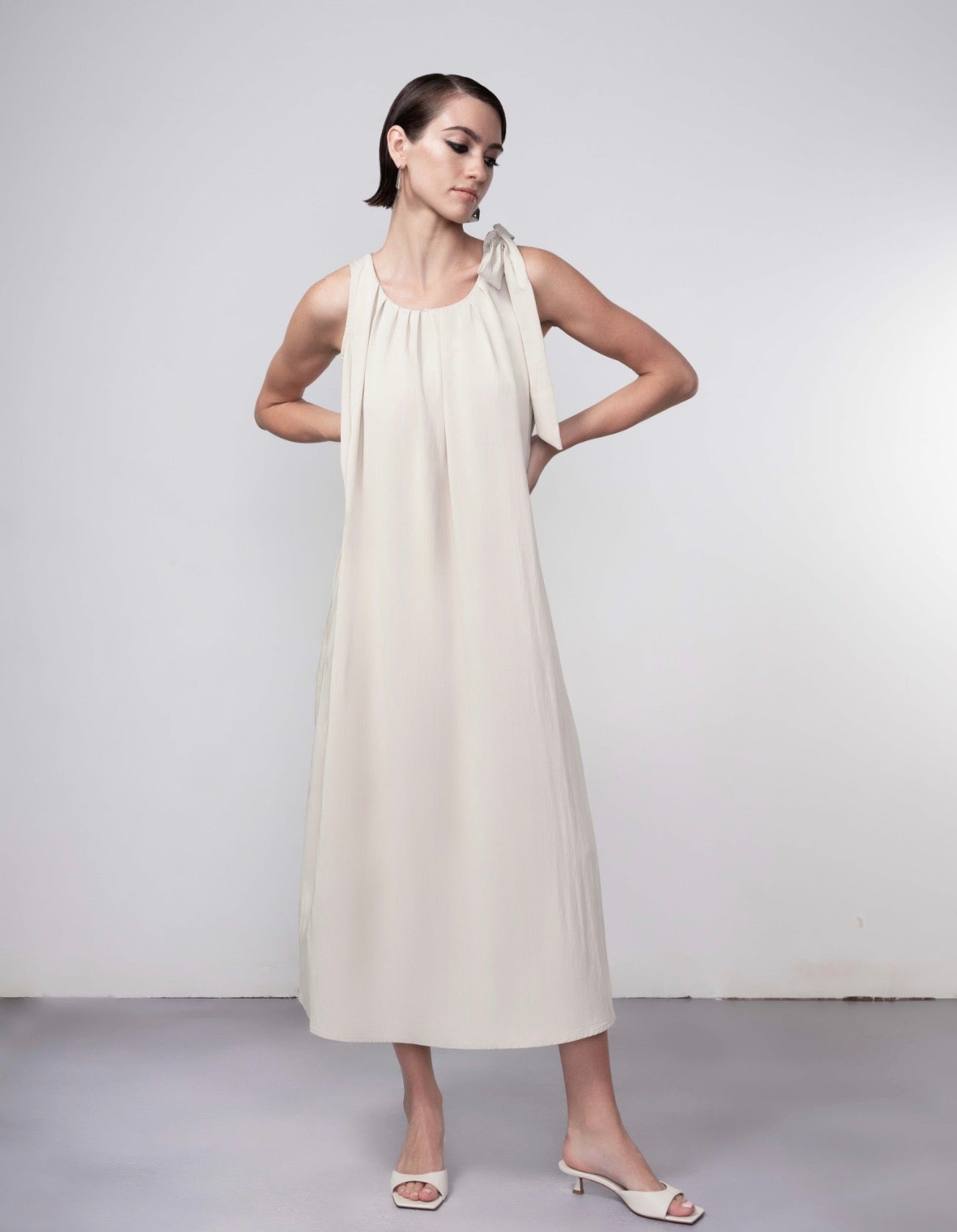 • Midi length with gentle gathers from the neckline