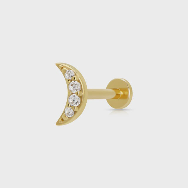 Scream Pretty Sparkling Moon Single Flat Back Earring - Gold