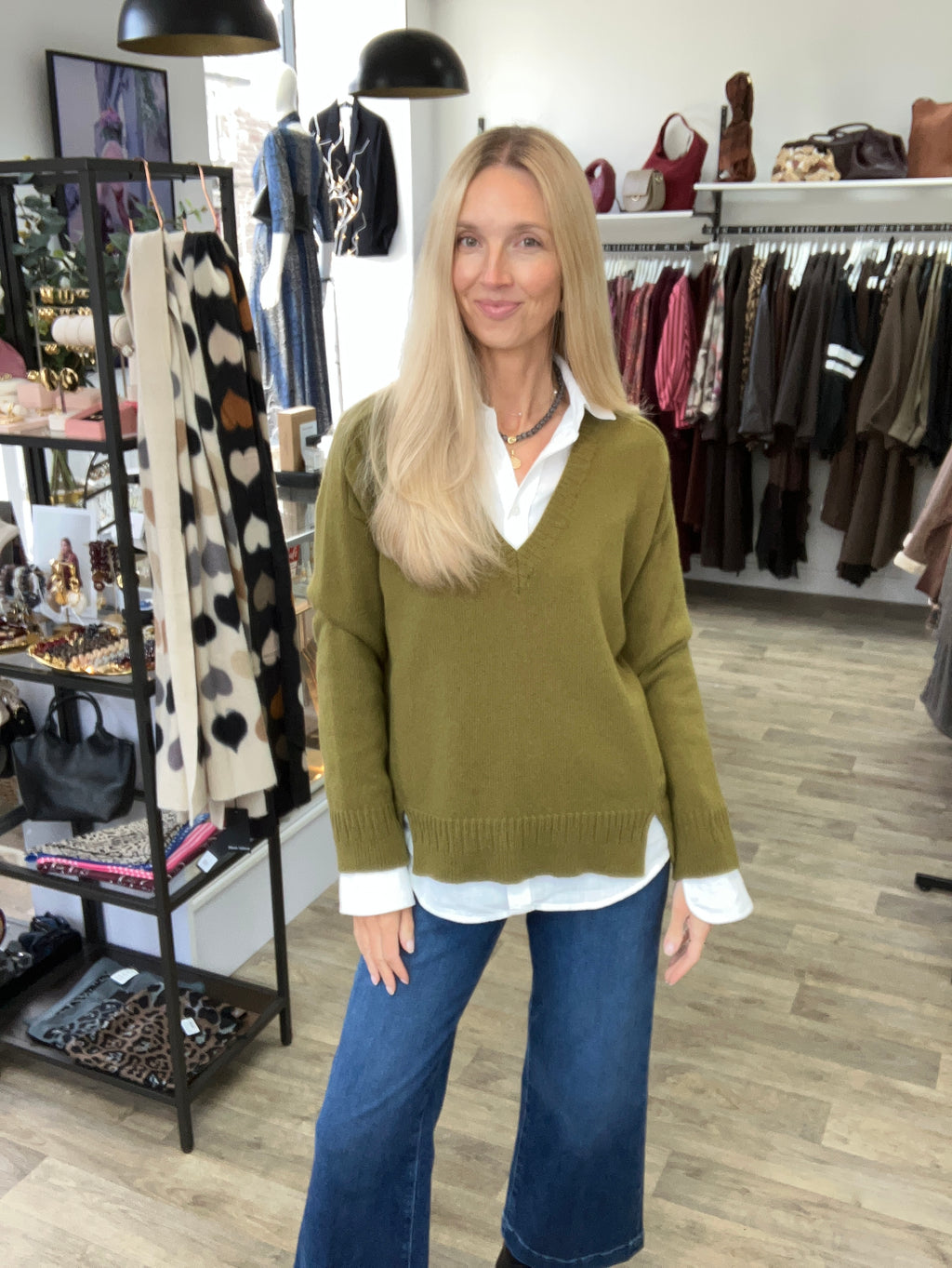 Loop Cashmere Ribbed Detail V Neck Sweater - Denim Aurora