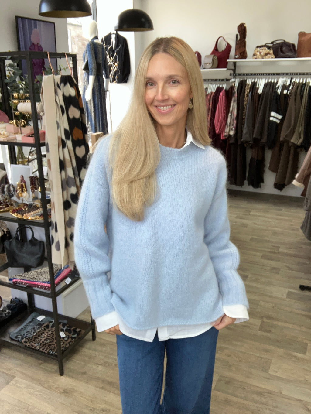 Loop Cashmere Ribbed Detail Lofty Crew - Sodalite Blue