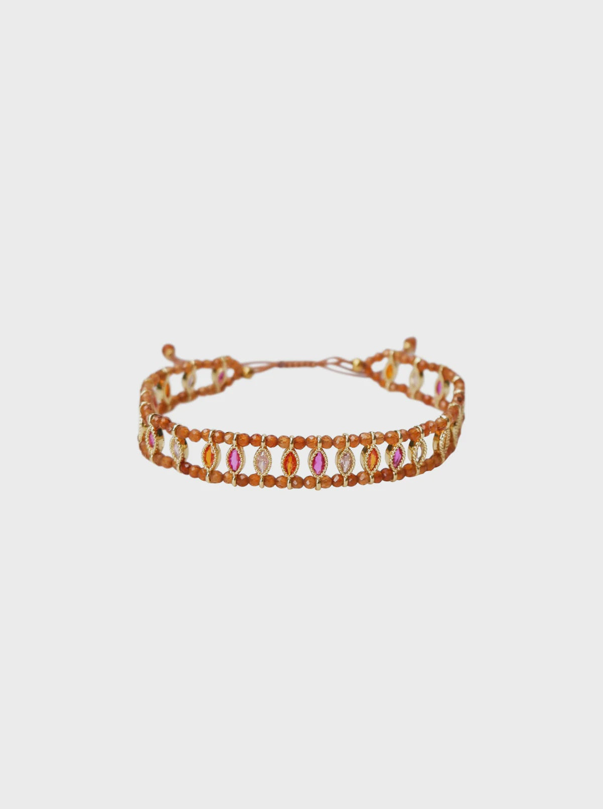 Feminine handmade bracelet with an elegant and colourful expression. The delicate details and small decorative elements create a light and exclusive look that adds warmth and personality to your styling.