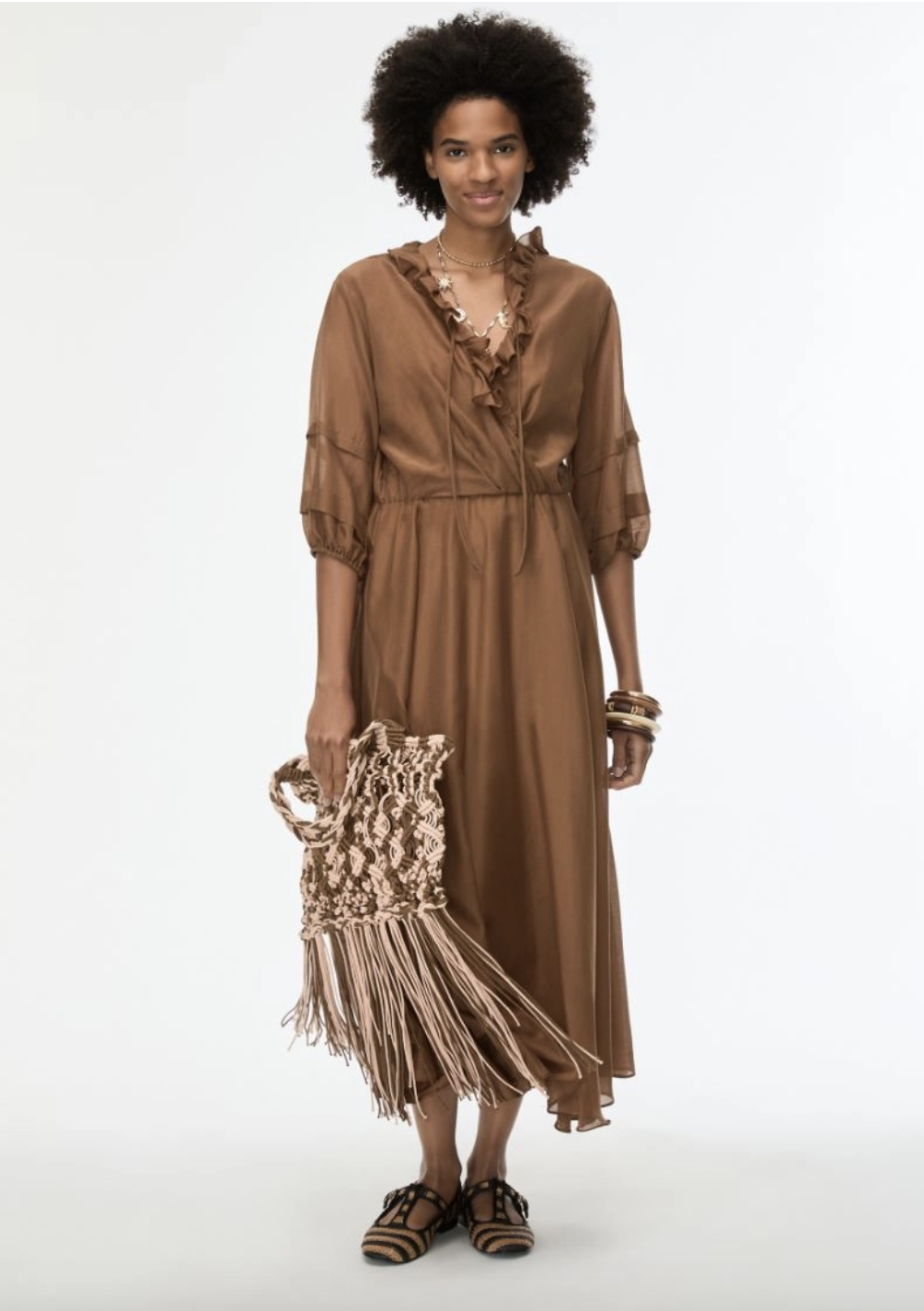 IBLUES Radente Long Silk Blend Dress - Cocoa