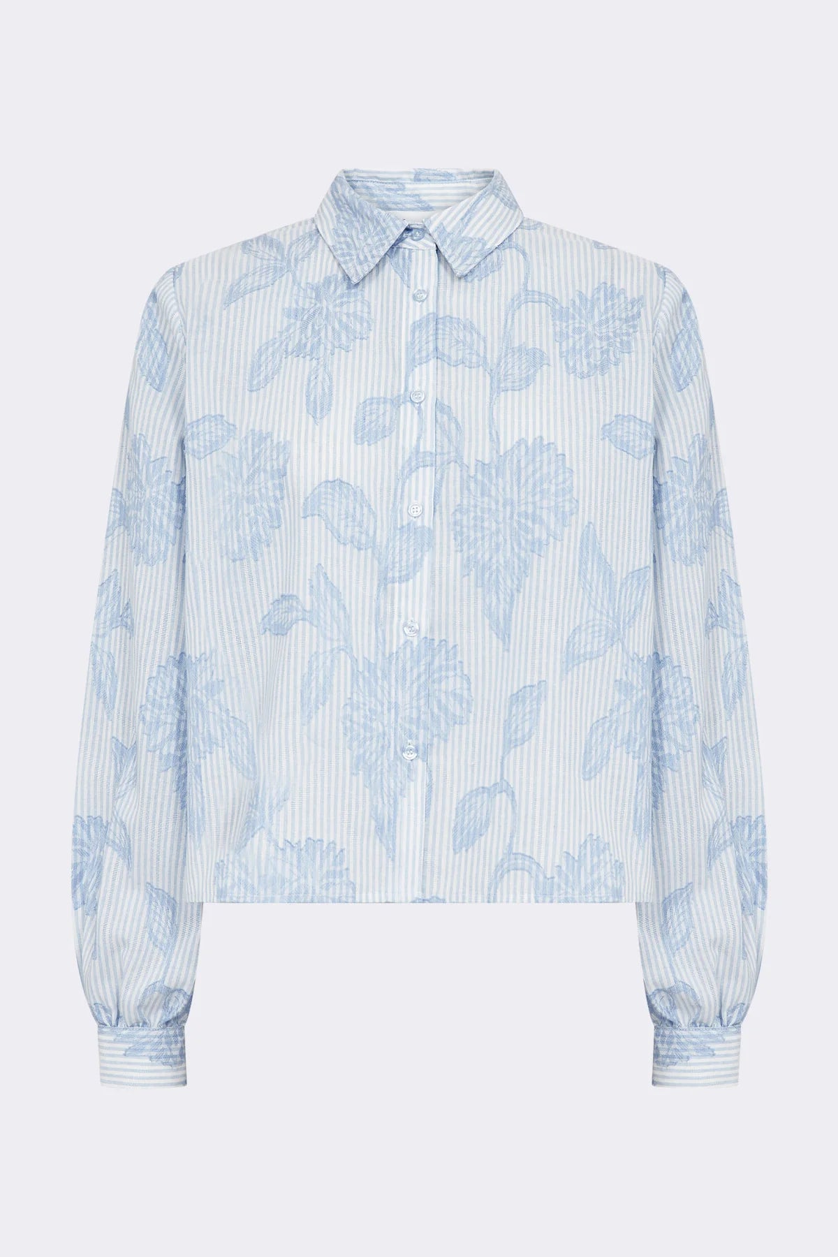 The Pisa blouse has a delicate floral print, a button up, shirt shape and buttoned cuffs with a relaxed silhouette. Pair this elegant shirt with fitted trousers or a classic skirt for a refined look.