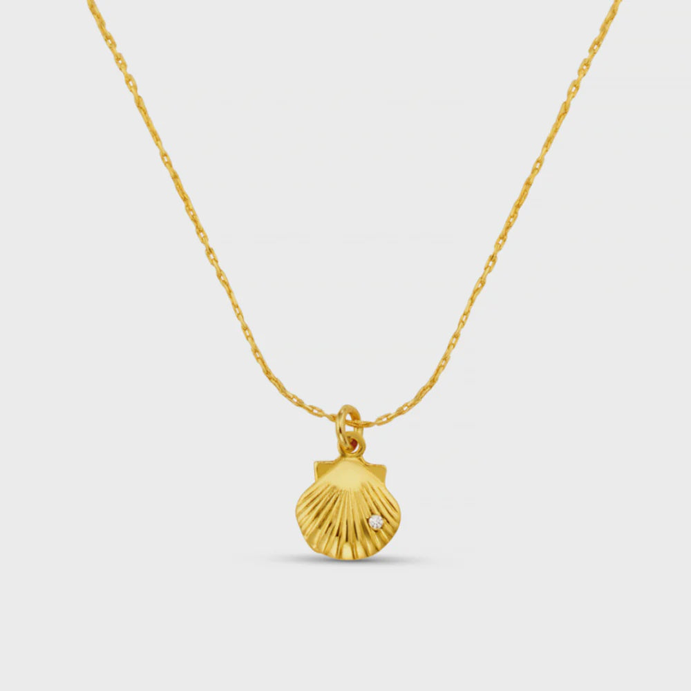 The Fine Crystal Shell Collar Necklace blends coastal elegance with subtle sparkle. Featuring delicate shell charm, accented with a single crystals.