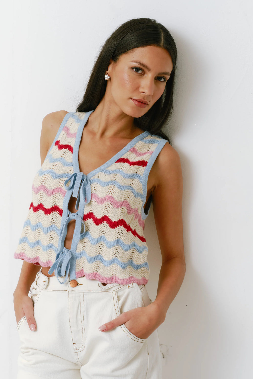 Seventy + Mochi Edie Tie Vest - Baby Blue Stripe