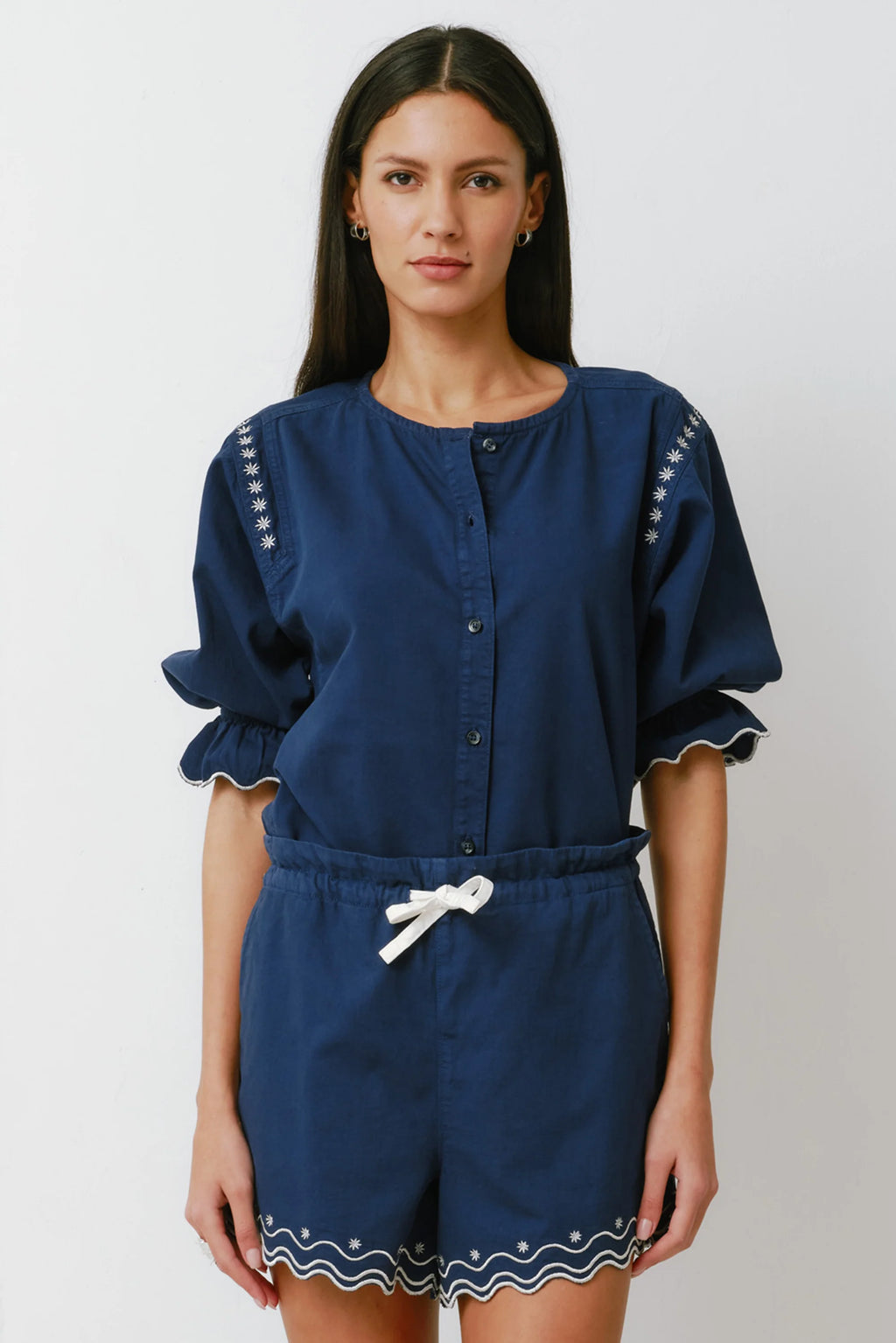 Seventy + Mochi Edie Henley Top - Baby Blue Stripe