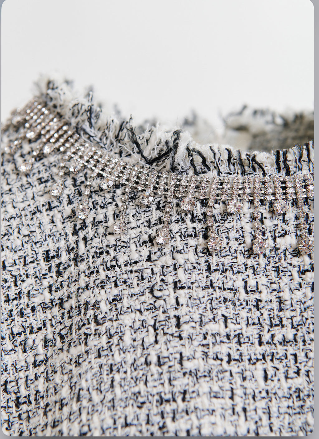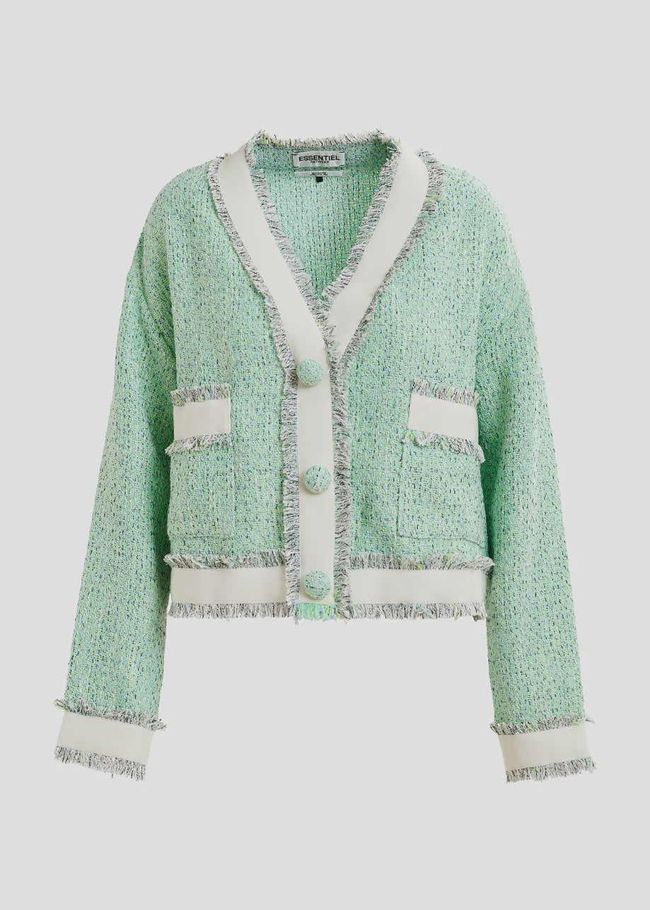 Essentiel Antwerp Hoola Cropped Tweed Cardigan - Grey/Mint Green/White