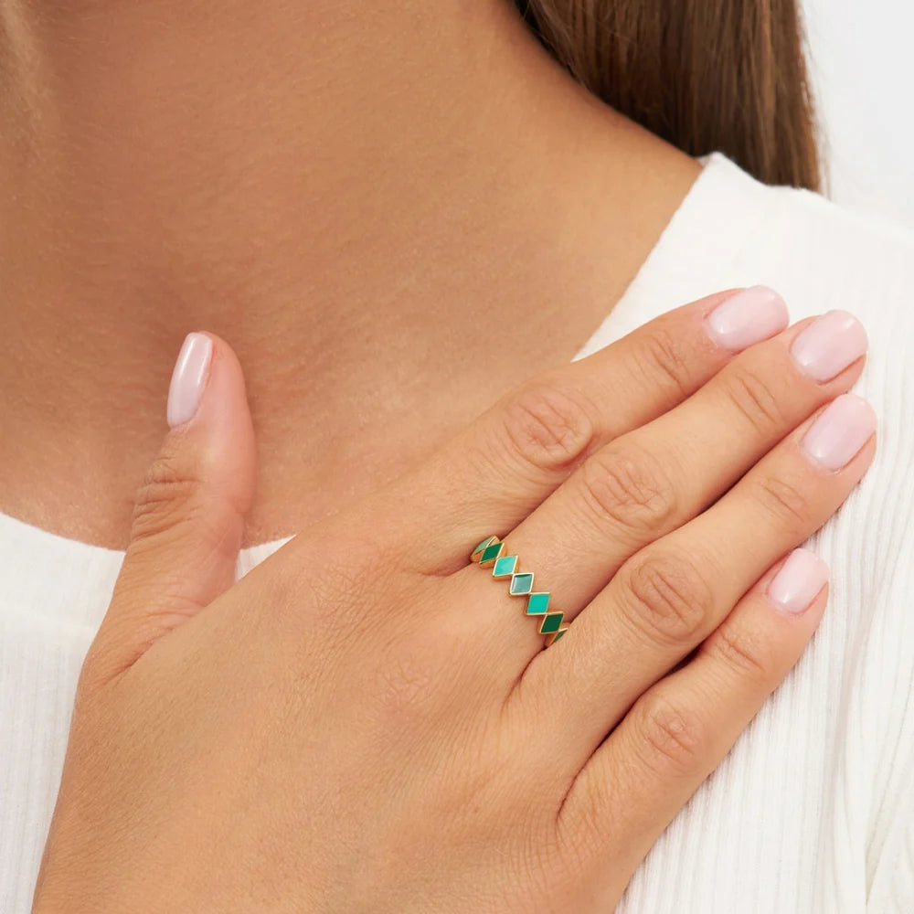 LULU Copenhagen Diamond Small Ring - Gold /Light Green