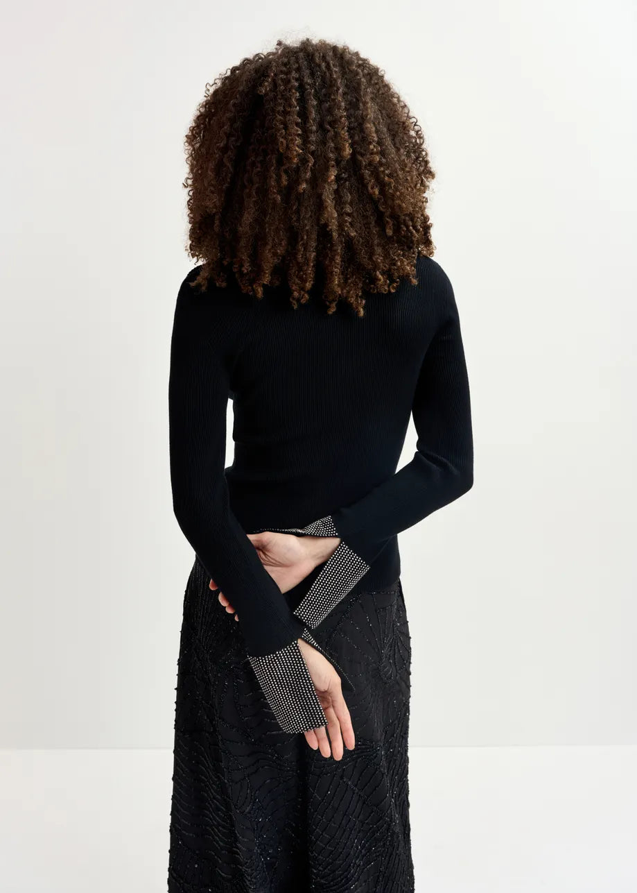 Essentiel Antwerp Gomi Pullover With Rhinestone-Embellished Cuffs - 25 Year Exclusive - Black