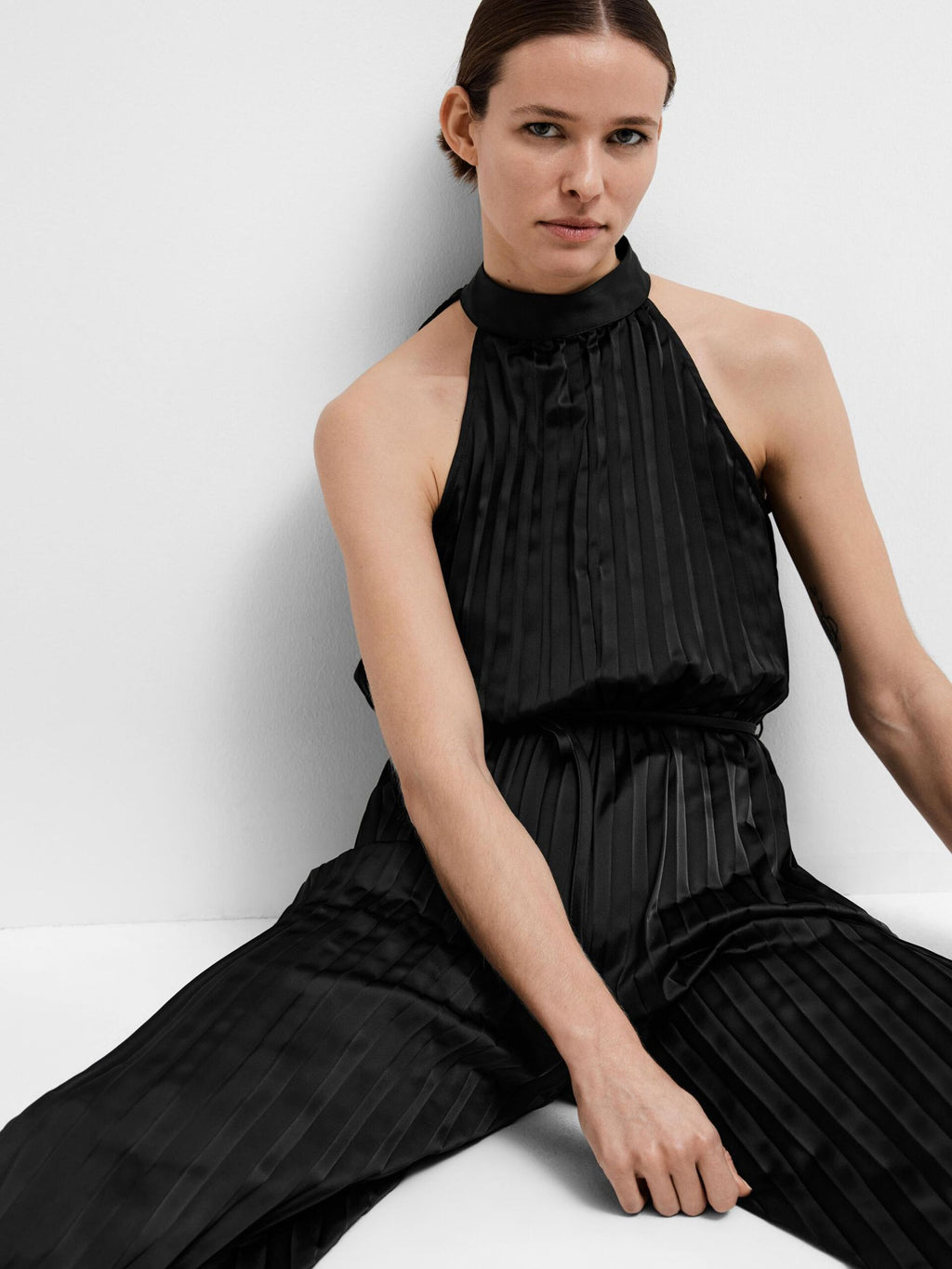 Selected Femme Zenia Plisse Pleated Jumpsuit - Black