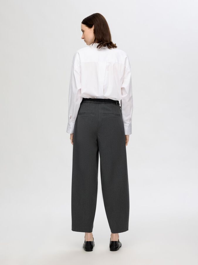 Selected Femme Piya High Waisted Barrel Pant - Dark Grey