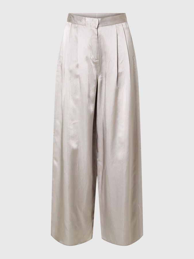 Selected Femme Selene Extra Wide Satin Trousers - Dove