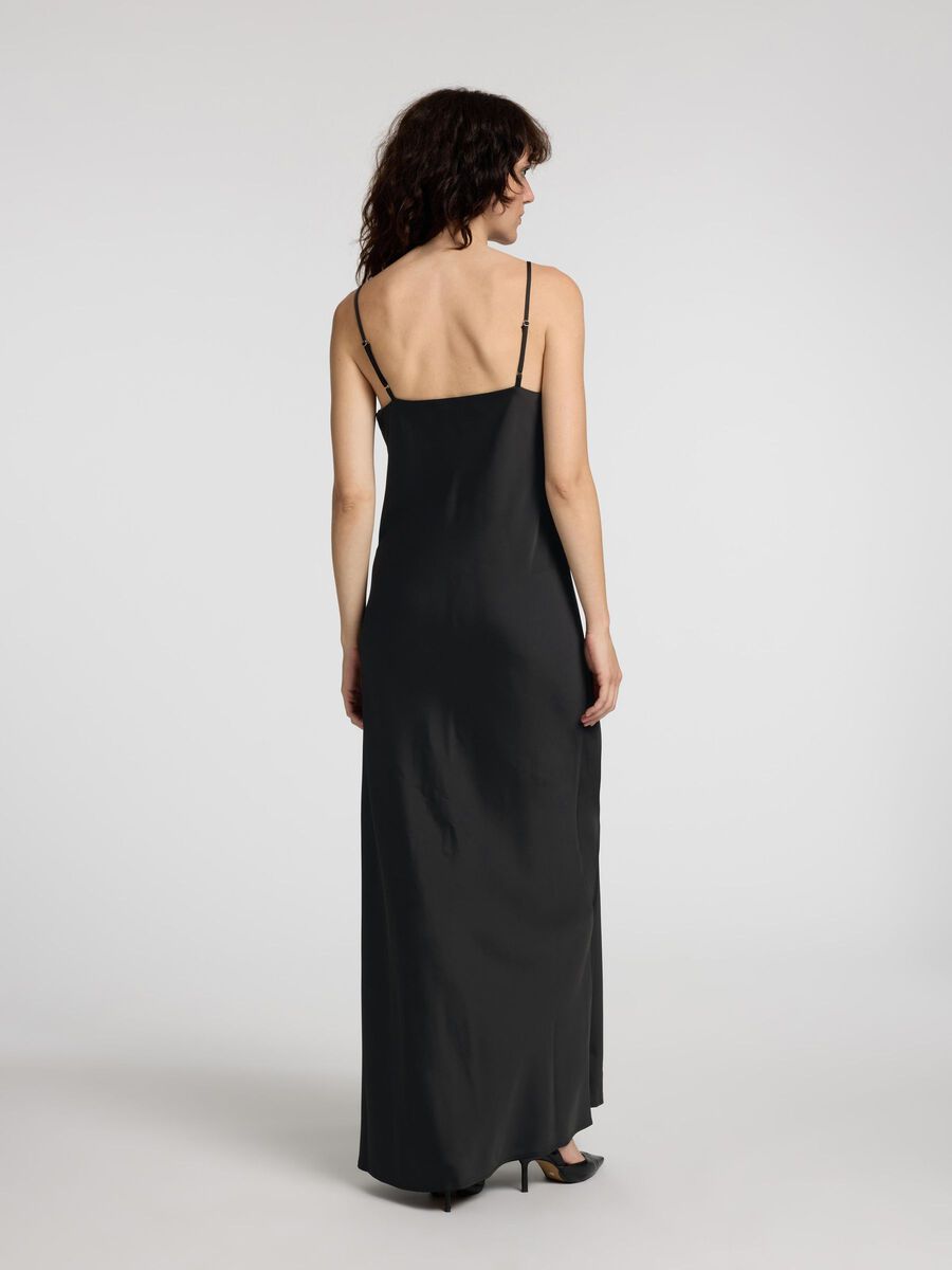 Selected Femme Alena Satin Lace Slip Dress - Black