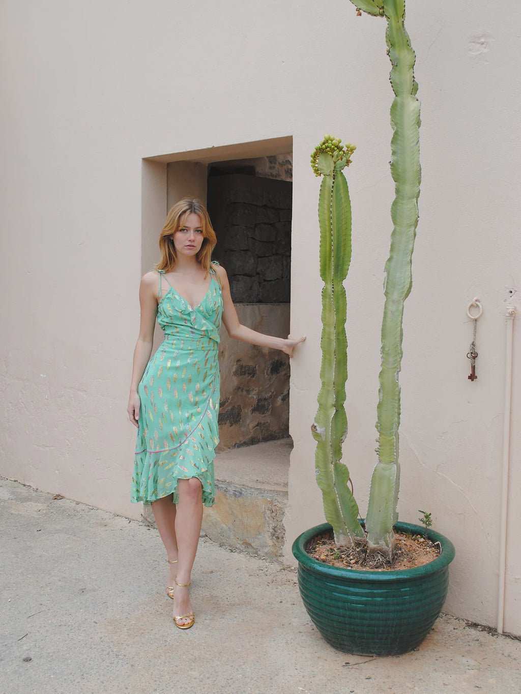 Stardust Sassafrass Midi Dress - Jade Metallic Sunset