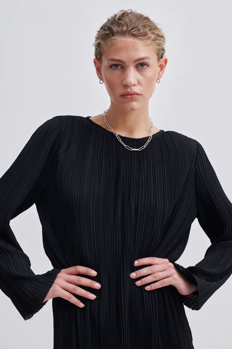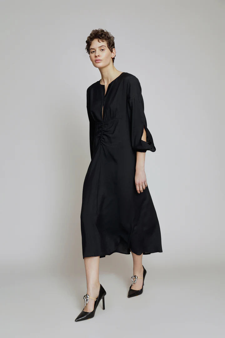 Stella Nova Midi Dress With Flounce At Chest - Black