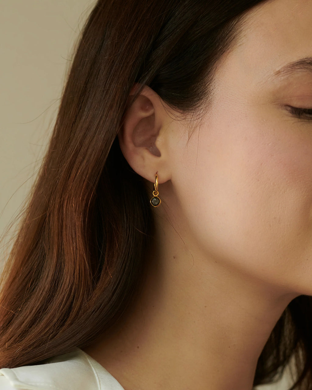 Carré Gold Plated Hoop Earring 1cm - Smokey Quartz (Single)