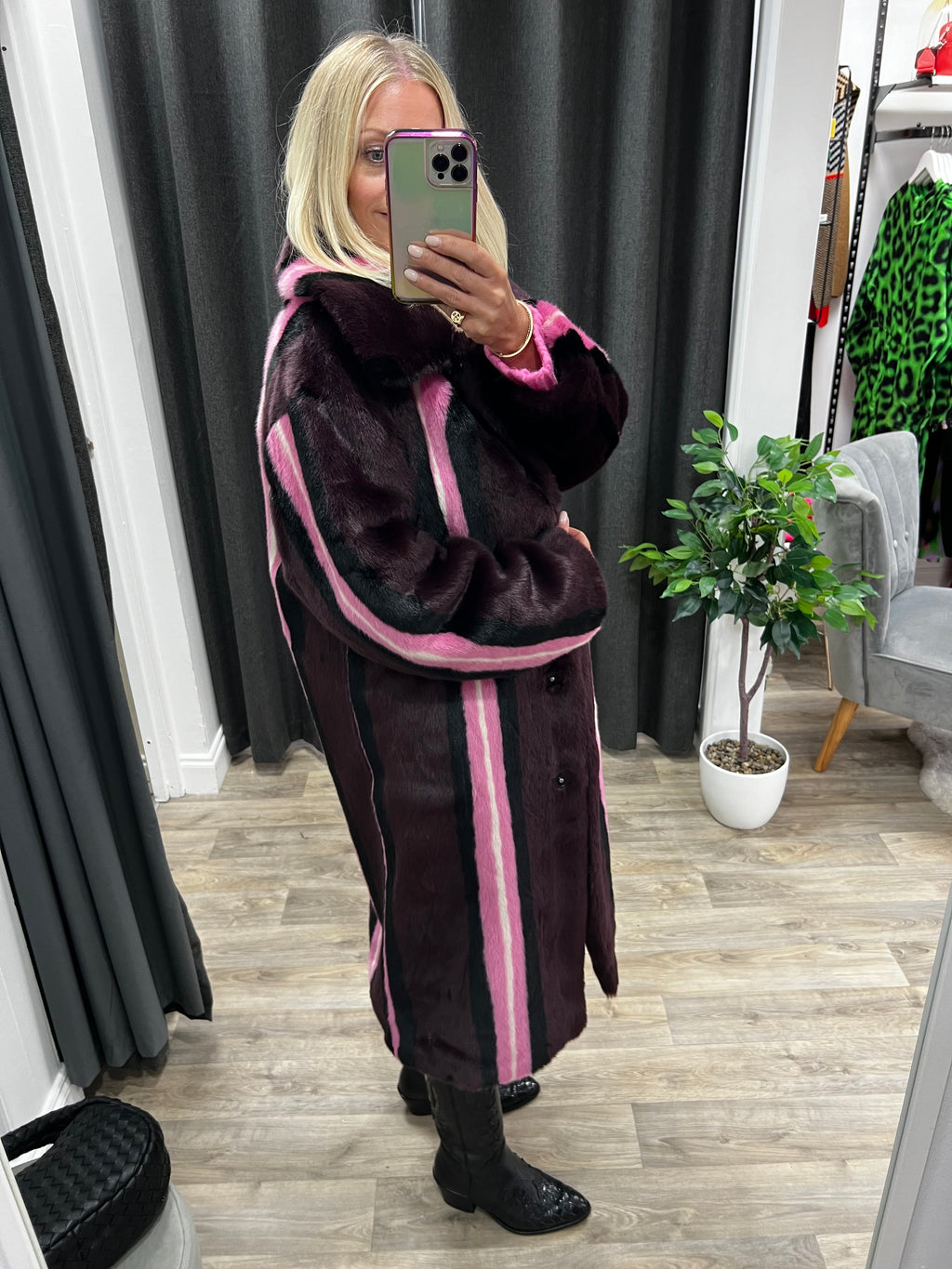 Jakke Kelly Faux Fur Coat - Burgundy Stripe
