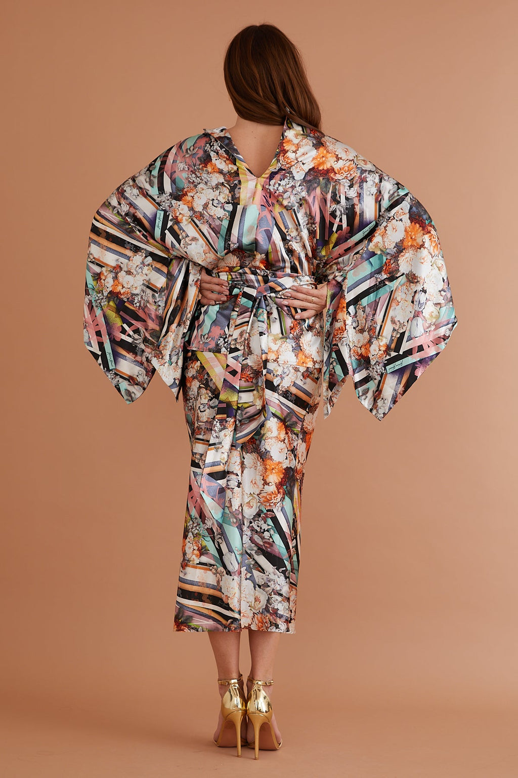 Stella Nova Hammered Midi Silk Dress With Print - Flower Mix