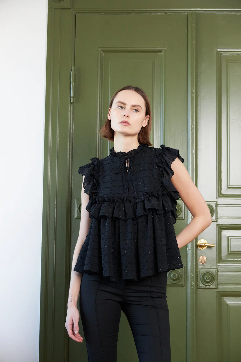 Stella Nova Sleeveless Blouse With Flounce - Black