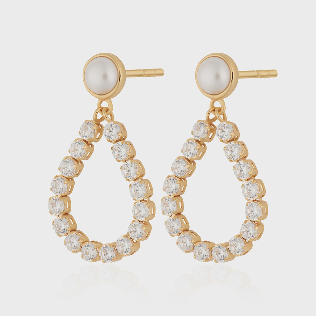 Scream Pretty Hannah Martin Tennis & Pearl Teardrop Stud Earrings - Gold Plated