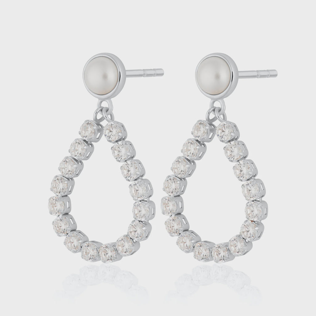 Scream Pretty Hannah Martin Tennis & Pearl Teardrop Stud Earrings - Sterling Silver