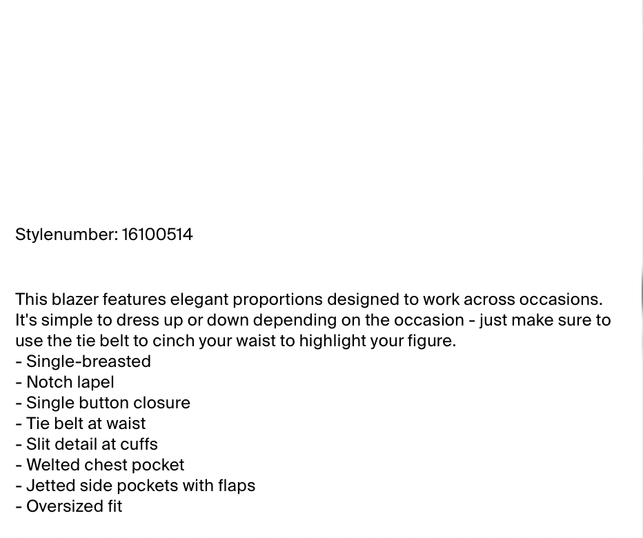 Single breasted, single button closure